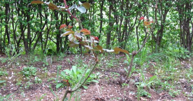 Sve ruže sam dobro zaogrnuo malčom i zemljom da ne bi izmrzle preko zime. Virile su samo po par centimetara grane iz humki koje su stajala nad njima. Sada u proleće je vreme da se ruže oslobode te humke, ne bi li lakše rasle. To ne treba raditi dokle god ima mraza, da ne izmrznu. Stoga, gledajte vremensku prognozu i polovinom marta razgrćite zemlju, mada su one snažne biljke pa će čak i pored nabacane zemlje naći put napolje i izlistati bez većih problema. Malč ostavite oko ruža jer on treba da svojom prekrivkom čuva vlažnost zemlje oko ruža i spreči isušivanje. Ujedno, sprečava razvoj okorova i sa njega se izrasli korov lakše čupka.