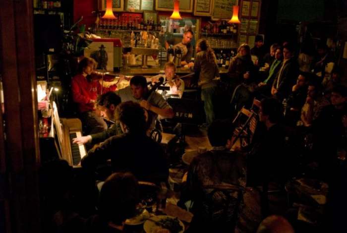 Kafic, skromno namesten – drvene stolice i stolovi, sank u fazi raspadanja, gomila bespotrebnih detalja, ne deluje bas ni preterano cisto ali je zivih boja  i to mu daje  izvesnu draz. U uglu stoji prastari pianino, deluje kao umetnicki detalj. Struktura ljudi  je takodje neuobicajena – hipsteri, likovi sa naocarima tipa “sedam sekretara SKOJ-a” (citaj americki intelektualci koji strasno vole ideju socijalizma), surferi, dosta “grandza”.