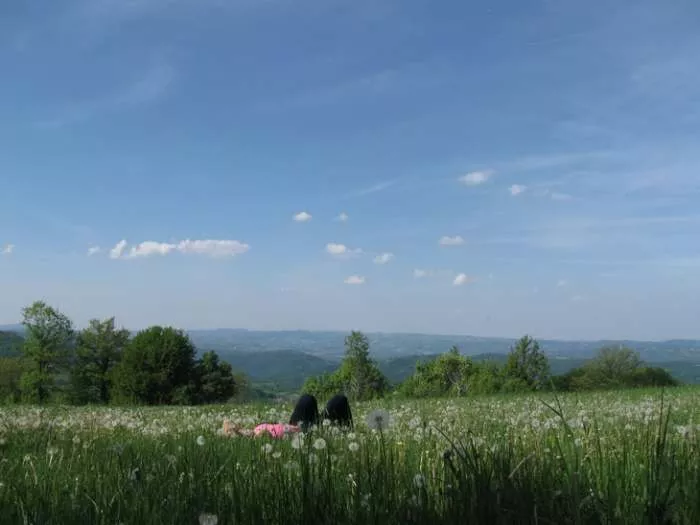 Predeli su se smenjivali. Nailazile su divne livade, pune poljskog cveća, maslačka, lepe i bogate trave. Na jednoj od njih smo stali da bi vodič otrčao do obližnjeg bunara po vodu za celu ekspediciju. Odmah smo se pobacali po udobnoj travi, zagledali u nebo i rešili da ostanemo što duže u tom stanju spoja neba i zemlje.