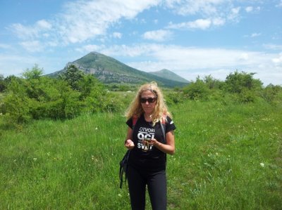 Krenuli smo iz Vrmdže putem koji su nam preporučili meštani. Ivan je odmakao dosta ispred nas i u jednom momentu staza je počela da se gubi i mogli smo samo da nagađamo gde dalje. Mreže nije bilo pa nismo mogli da se čujemo sa Ivanom. Kako smo više zalazili bilo je sve neprohodnije i odlučili smo da se vratimo nazad. Znali smo da je Ica sa džipom negde na kolskom putu, ali ni on nije bio dostupan, pa smo pokušali da se otprilike krećemo u pravcu gde ćemo izbiti iz šume najbliže Ici. Svaki put kad smo pomislili da smo našli izlaz, naleteli smo na litice da bi na kraju završili na nama već dobro poznati teren koji smo prethodnih dana već uveliko apsolvirali, tj.neprohodnu strminu niz šumu. A onda je zazvonio telefon :) Ivanova sekretarica iz Beograda nam javlja da je Ivan uspeo samo nju da dobije i da nam javlja da se on takođe izgubio negde u brletima prilaza podnožju Rtnja sa zapadne strane! Mi i dalje nismo mogli da ga dobijemo, pa je Suzana bila naša veza. Tek što smo sišli dole, sledio je prolaz preko guste visoke trave i svakakvog rastinja koje se uporno lepilo za moje pantalone i saplitalo me. Kao ona biljka Kleopatra iz serije „Adam“s family“. I to samo na mene, a Zozu i Milana nije dotakla! Kad se izvukosmo i iz ovog ludila, ja više nisam imala crne, već čupave zelene pantalone i majicu!