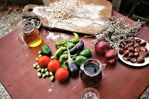 Хране се типичном Средоземном („Медитеранском“) исхраном, можда је правилније написати, грчком исхраном, доста маслиновог уља, поврће из баште, кромпир, сочива, зеље, свежа салата, хумус, и пије се домаће вино. Пију козије млеко. Пију по коју шољицу кафе. Имају низак унос меса и млечних производа.
