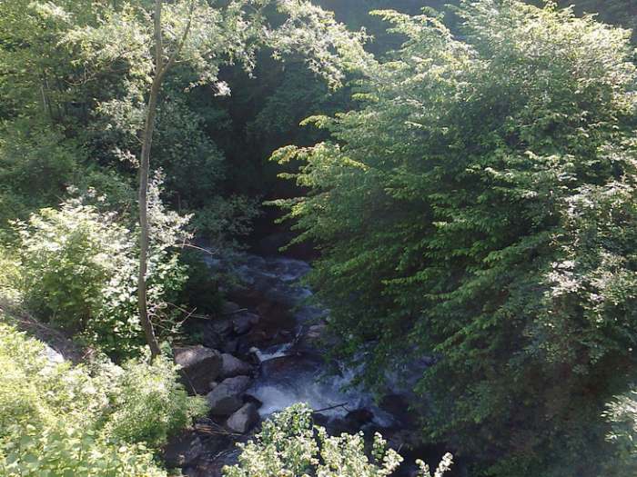 Na krivini preko koje se bacao potočić, sretosmo čovjeka koji je izvlačio posječena stabla. Iznenađen zastade da nas priupita odakle smo. Nije bio oduševljen odgovorom. Do kraja dana to je bio jedini susret. Šuma nas je obuzela prozračnim treptajima, skrivajući nas od vrućine. Staza je tekla čas lijevo čas desno, podapinjući nas rasprostrtim kupinjacima. Začu se huk vode. Siđosmo u dolinu riječice, koja primi nas i još nekoliko potoka u svoje društvo. Žuborenje na sve strane. Fotkanje je krenulo. Tražeći mjesto za odmor i koji zalogaj, prođosmo pored nekoliko krava i jednog, mladog bika. Očito prepušteni sami sebi, misleći da smo došli po njih, umalo ne krenuše za nama. Utrnula ramena se razveseliše kada skidoh beštiju od ranaca. Hladovito mjesto iznad puta, a sred potoka, bio je pun pogodak. Napih se onako, direktno iz talasića, pa povadih malo hrane. Platnena salveta po kamenju, a na njoj sve što prija želudcu. Slatko li je!