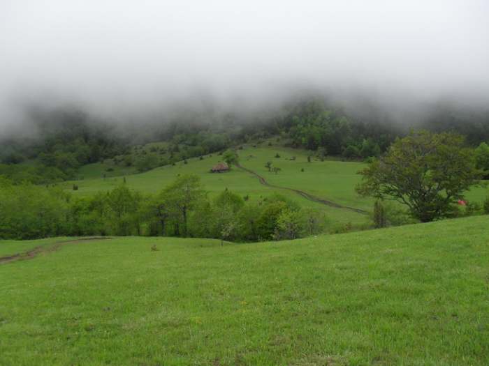 Nedelja me povuče za kapu. Osjetih hladnoću u kostima. Vrijeme za ustajanje. Napolju magla stisla po šumi, sve do livade. Iznad šatora se vidi štala slamnatog krova. Potok huči kao raspomamljen. Sat pokazuje šest. „Čika Marko, jesi živ“? Začu se rajfešlus na vreći. Živ je! „Hoćemo li piti čaj? A kako izgleda mesto“? Dok se on izvlačio iz platnene kuće, natočih vodu iz talasa, malo mutnog potoka. Trebali smo obići okolinu, fotkati, spakovati se i sići do sela Polimir, na magistrali. Samo što smo popili čaj poče padati kiša. Kroz maglu se nisu vidjeli oblaci, pa zaključih da će kratko da izbace vodeni teret i odu dalje. Međutim, pretvorila se u pljusak koji nije dao priviriti vani. Blaga nervoza me je obuzimala. Doručak, pa slušanje koncerta kišnih kapi po šatoru. To potraja do podne. Naglo prestade pa se izmigoljismo napolje. Marko ode obići krug i fotkati, a ja se brzo prihvatih pakovanja. Onako sve mokro složih nekako u ranac. Dok se Marko vratio, krenu ponovo pljusak i zakova nas, ovog puta obojicu u njegov šator. Hrane nam je ponestalo. Hljeb potrošen za doručak. Od ostataka tjestenine,supice i začina, sklepasmo vrlo ukusno jelo, koje nam povrati raspoloženje. Tek oko 17,30h se smanji dotok vode sa neba. Napokon pokret. Nije bilo vremena dodatni obilazak. Uočio sam vodenicu, 50m ispod našeg kampa. Moraćamo ponovo doći u ovaj kraj. Sunčan dan bi dao priliku za uživanje. No, iovako je bilo nestvarno. Mokre čizme su se natapale i dalje. Vunene čarape su onako natopljene, davale još malo toplote u toku silaska preko sela Gornji Dolovi. Pozdravi nas deda sa kućnog praga, začuđeno. „Odakle vi, deco po ovom vemenu? Planinari? Aha. Ako, ako“!