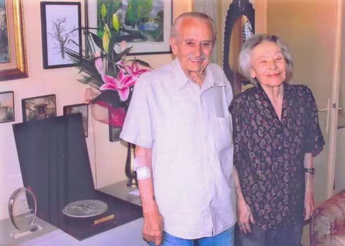 Др Вера Ценић и др Градимир Ценић у свом дому са својим јавним признањима Града Врања за животно дело –