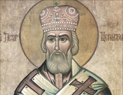 „Petar, Božijom milošću pravoslavni mitropolit Crnogorski, Skenderije i Primorja i ruskoga carskoga ordena svetoga Aleksandra Nevskog kavaljer.