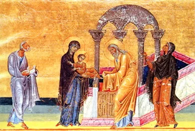 Mali Isus Hrist ulazi u hram u Jerusalimu na Sretenje sa Gospodom