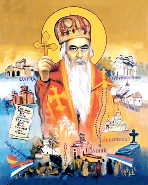 Danas Nebeska Srbija, danas, o ne samo Nebeska Srbija, nego Pravoslavna Crkva Nebeska, slavi Najvećeg Mučenika u rodu Srpskom posle Svetoga Save, Svetog Ravnoapostolnog Srbskog Nikolaja. Danas njega slave Serafimi i Heruvimi, jer im je ravan po blagovestima koje je širio zemljama, svima zemljama Evrope, Amerike i Azije kao Heruvim! Njega danas sigurno grli — ko? Sveti Sava grli svog Najmilijeg Sina u Srpskome rodu. A sa njim, oko njega, i mnogobrojni Srbski Svetitelji sa Svetim Savom, Svetim Simeonom Mirotočivim i ostalim Srpskim Svetiteljima. Danas na nebu, Nebeska Srbija slavi najvećeg Srpskog Svetitelja. Danas Svi Sveti, sve velmože, svi Sveti Nemanjići na nebu, pozdravljaju Novog Srpskog Mučenika, Najvećeg Srpskog Novog Evanđelista, Najvećeg Novog Srpskog Apostola—Svetog Vladiku Nikolaja.