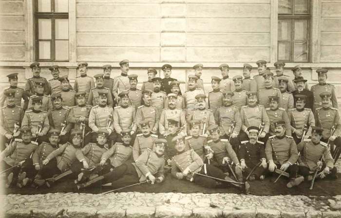 Četvrti konjički puk – Pukovnik Milija Veselinović sedi na stolici u drugom redu drugi gledajući s desna na levo