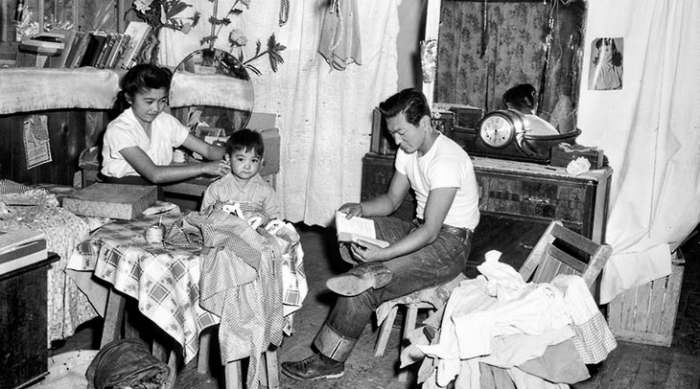 Porodica japanskog porekla u baraci američkog ratnog logora – Parker, Arizona 1943 godine