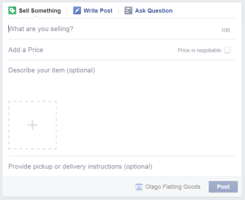 Facebook želi da stane tome na kraj i da olakša svojim korsinicima da vrše kupovinu i prodaju na ovoj društvenoj mreži, ali naravno i da zaredi “koju paru”. Zato je uvedena nova test opcija, pomoću koje će se vršiti direktna prodaja i kupovina preko ove mreže. Određeni broj korisnika dobio je mogućnost da učestvuje u testiranju ove nove opcije. Stvar je veoma prosta, jednostavnim klikom na dugme “Sell Something” pokrenućete veoma intuitivni interfejs za postavljanje oglasa. Dugme “Sell Something” se nalazi odmah pored standardnog “Write Post” dugmeta. Nažalost ova opcija je omogućena samo malom broju korisnika, a svi korisnici kojima je ova opcija omogućena dobiće i obaveštenje o tome, kako ne bi slučajno prevideli ovu novu opciju (slika ispod).