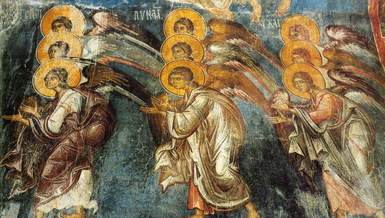 Andjeli se stalno mole Gospodu – detalj freske iz Kareje, Sveta Gora