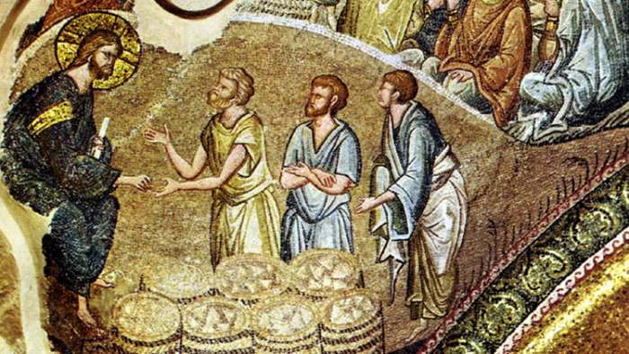 Gospod Isus Hrist umnožava hlebove – freska scene iz Biblije