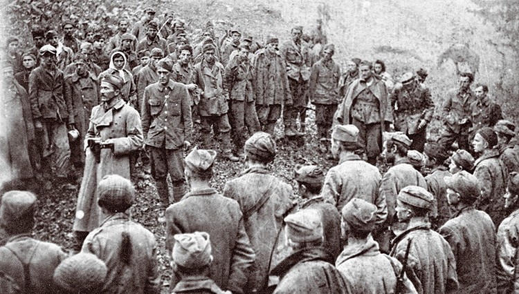 Komandant Danilo Lekić govori borcima uoči proboja na Sutjesci