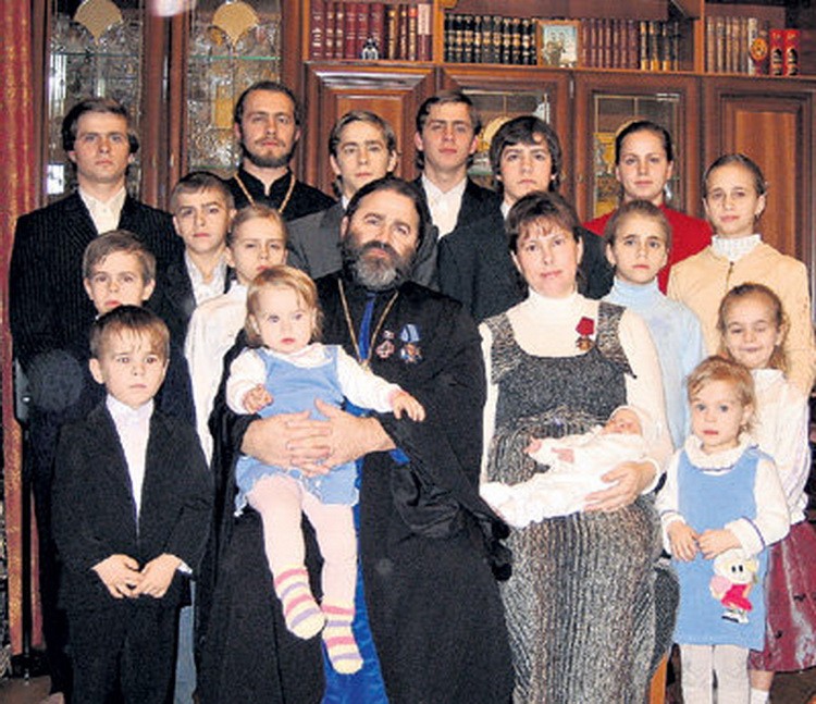 Mislim, pre svega, u našim genima. Najvažnije – to je zahvaljujući našim roditeljima. Popadija i ja smo rođeni u mnogodetnim pravoslavnim porodicama. Moji roditelji su imali 18-oro dece. Ja sam bio deseto dete. Popadijini roditelji su isto imali mnogo dece. Oni su decu vaspitavali u ljubavi prema sebi i jednih prema drugima. I kada smo nas dvoje dobili mnogo dece, to je bilo interesantno i lako, izgledalo je kao da tu ništa nije komplikovano. Jednom prilikom popadija mi je rekla: „Ja živim za Boga, za tebe i za decu“. Može biti da je u tome njena tajna?