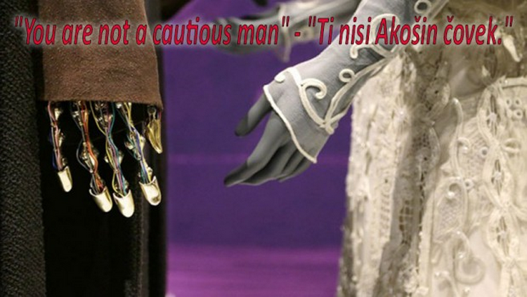 “You are not a cautious man” – “Ti nisi Akošin čovek.” (Pravilno bi bilo: “Ti nisi oprezan čovek”)