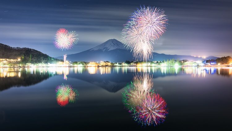 Vatromet koji ćete gledati se odigrao na jezeru Kawaguchi u Japanu, ispred planine Fudži, koja je u pozadini vatrometa. Košato je oko 7 miliona jena.