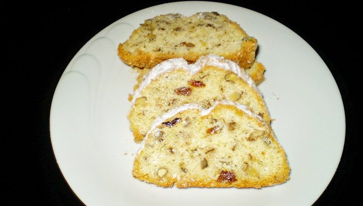 Izraditi žumanca sa šećerom i dodati seckane i mlevene orahe, suvo grožđe, oštro brašno i kašičicu limunovog soka. Posebno ulupati belanca i dodati masi uz lagano mešanje. Sipati u rebrast pleh koji ste dobro namazali masnoćom i posuli brašnom. Pećnicu zagrejati na 200° C i peći 30 minuta,10 minuta pred kraj smanjiti na 150° C (probati čačkalicom da li je pečeno). Pečen kolač posuti šećerom u prahu.
