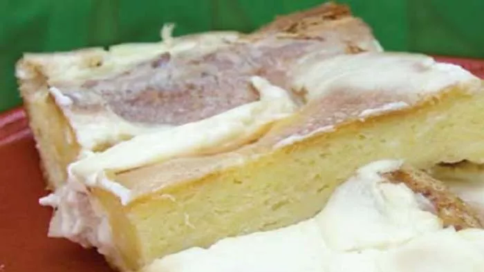 Mikserom izmešajte jaja i mleko. Dosipajte malo po malo brašna i mutite dok ne dobijete tečno testo, malo gušće od onog za palačinke. Posolite, pa sipajte testo u dobro podmazan pleh.