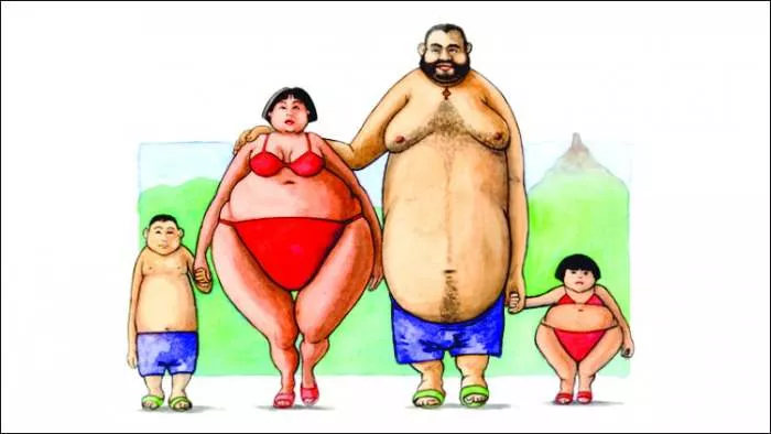 - gojaznost gornjeg dela tela (androidni odnosno muški oblik gojaznosti u obliku jabuke za razliku od tzv. ženskog u obliku kruške),