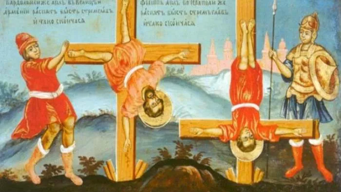 Apostoli Vartolomej i Filip naopako razapeti na krstu
