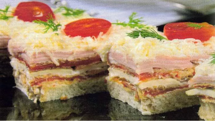 Malo starog tost hleba, pečenih paprika, kačkavalja, šunke, majoneza, i praznične štangle su brzo spremljena zakuska. Ovo je slana torta koja se seče na štanglice, servira se hladna, a odličnog je ukusa.
