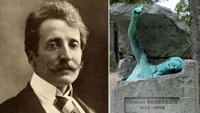 Na francuskom groblju Per Lašez nalazi se grob pisca Žorža Rodenbaha, belgijskog simboliste. Njegova figura koja izlazi iz kamene grobnice, a koja u ruci drži ružu, smatra se jednim od najčudnijih spomenika podignutih u čast jednom umetniku. Da li je ova kompozicija dovoljno bizarna da se uvrsti u red spomenika iz horor priča ili sasvim romantična i u skladu sa tananom estetikom simbolizma?