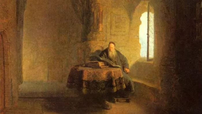 „Sveti Anastasije Sinait u manastiru“, detalj sa Rembrantove slike (1631)