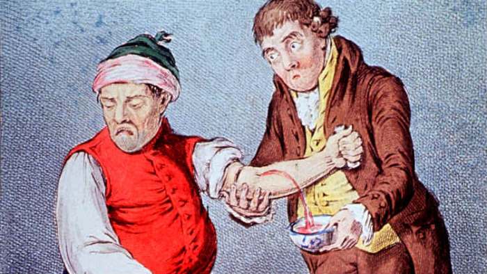 Otpuštanjem dela krvi iz tela, ta četiri elementa bi se ponovo vratila u ravnotežu.