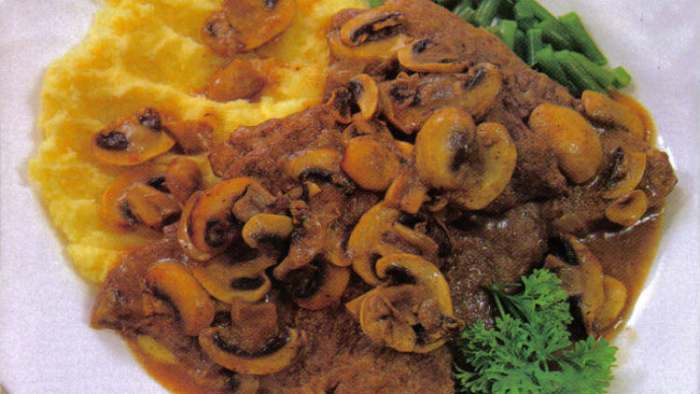 U tiganju sa rastopljenim puterom pržimo tanke listove šampinjona. Posolimo, pobiberimo i dodamo malo belog vina. Istučemo šnicle, zasečemo na 2 do 3 mesta i uvaljamo u brašno. Ispržimo šnicle u tiganju sa zagrejanim uljem i puterom. Izvadimo šnicle, a u isti tiganj sipamo konjak i flambiramo. Dodamo belo vino i vratimo ispržene šnicle.