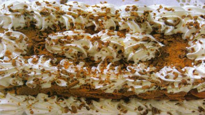 Mikserom mutimo 250 mililitara mleka i prašak za šlag. Šlagom punimo špric i ukrasimo strane i gornju površinu