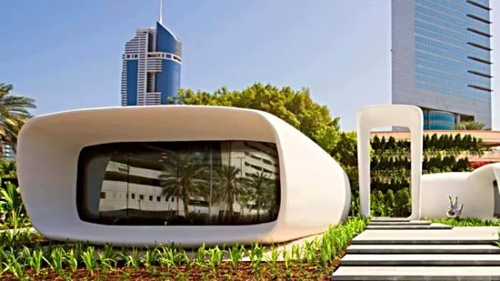 Dubai je prvobitno najavio planove za izgradnju prve na svetu 3D štampane konstrukcije još 2015. godine. Rezultujući projekat „Office of the Future“ firme Kille Design postao je prvi potpuno funkcionalan 3D štampani poslovni prostor. Bilo je potrebno 17 dana da se odštampa osnova objekta i još dva dana da se svi elementi postave na određenoj lokaciji. Štampač je karakterisala automatizovana robotska ruka koja je sprovodila proces štampanja. Odrađena je „super“ izolacija jer su roboti uz pomoć kompjuterski kontrolisanih tehnika proizvodili komponente i formirali jedinstvenu i složenu geometrijsku šemu za omotač zgrade. U okviru ovog poslovnog prostora se trenutno nalazi „Dubai Future Foundation“.