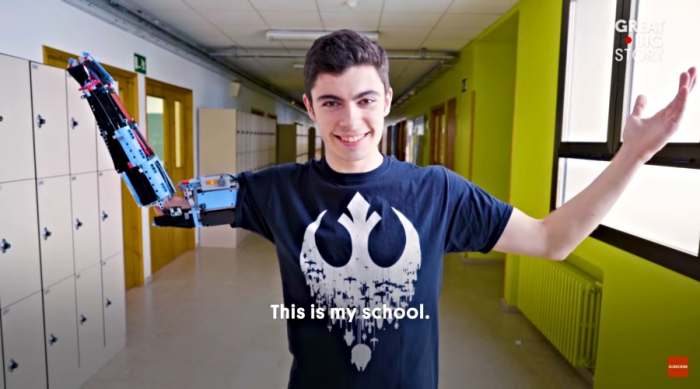 David Agilar, koji je rođen bez desne podlaktice zbog retkog genetskog poremećaja, sebi je napravio protetičku ruku robotskog tipa od Lego kockica.