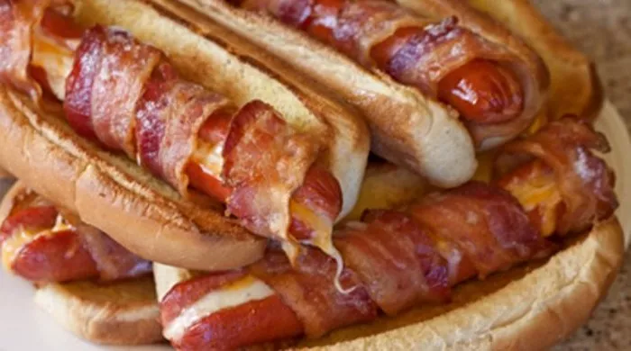 Ako se već želi obilan i jak doručak na početku dana, naša topla preporuka su uvijene viršle u slanini u koje idu još kiseli krastavčići i edamer, garnirane uz punjene šampinjone.