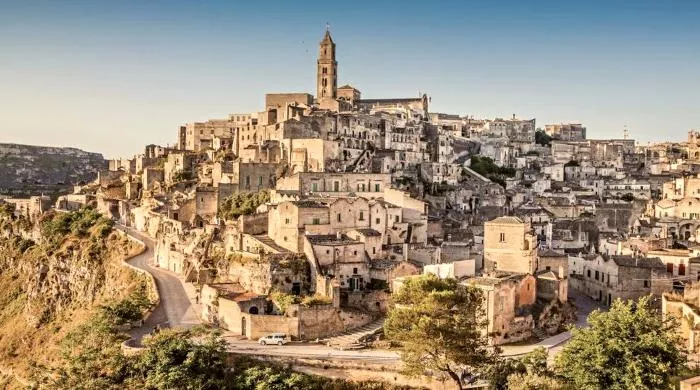 Grad Matera, jedan od najstarijih na svetu, poznat je kao Jerusalim zapada zahvaljujući svom položaju koji se nalazi na krečnjačkim stenama i svojim poznatim pećinskim kućama sassi.
