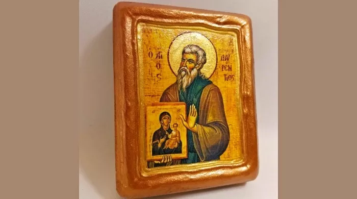 Baveći se zemljoradnjom i ponekad zidarstvom, Lavrentije jednom otide na svoju njivu koja se nalazila blizu grada Korinta. Tu mu se u snu javi Presveta Bogorodica i naredi mu da ide na ostrvo Salaminu, i da tamo obnovi njen porušeni hram. Lavrentije ne poverova tom glasu i ne pođe.